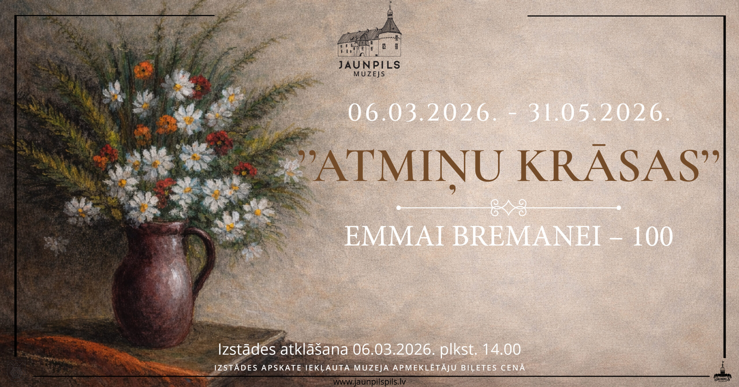 No 6. marta līdz 31. maijam Jaunpils muzejā būs skatāma izstāde “ATMIŅU KRĀSAS” EMMAI BREMANEI – 100