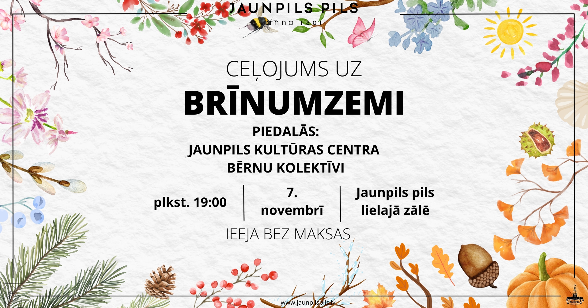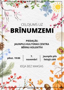 Aicinām uz sirsnīgu un krāšņu koncertu “Ceļojums uz Brīnumzemi”, kurā uzstāsies Jaunpils Kultūras centra bērnu kolektīvi.